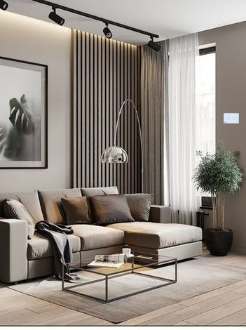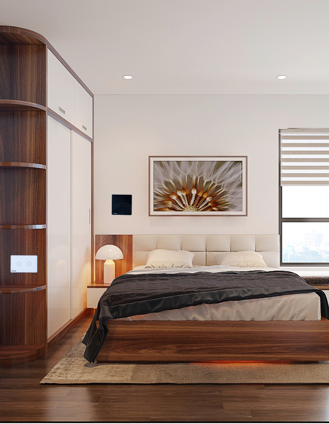Công tắc thông minh được thiết tế tinh tế với mặt kính cường lực, viền nhôm nguyên khối mạ vàng, càng tăng phần đẳng cấp sang trọng cho ngôi nhà.